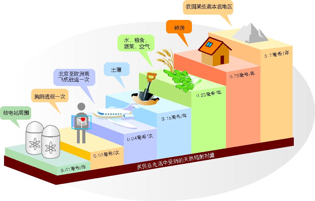 人類時刻都在經受著各類天然射線的照射,如宇宙射線,存在于土壤、巖石、水和大氣中的鈾-238、鈾-235、钚-232、鉀-40等,這些天然射線的照射就是天然本底輻射。